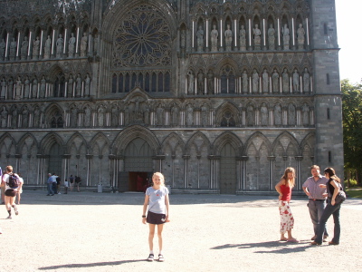 Molly in front of one of the most famous cathedrals in Europe, which happens to be in Trondheim.